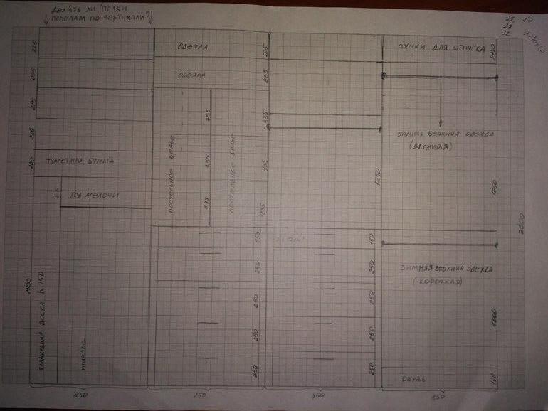 Спасибо. Под обувь 150 прикинула, но наверное правда надо больше. У нас еще проблема в глубине - максимум сможем сделать 53-55 см, поэтому верхнюю одежду думала за одну дверь, чтобы повесить ее и уже не трогать. А то, что будет носиться, будет висеть в шкафу в коридоре.