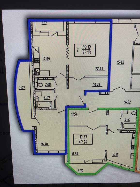 Если это несущие конструкции, я бы минимизировала кухню (сами столы и оборудование) и втиснула гостиную на тех 14 метрах которые есть. Если длина арки позволяет, туда можно поставить диван, а дверь комнаты 22.41 (в таком варианте детская) перенести ближе к входной двери, тогда рядом с диваном сможет организоваться место для хранения.