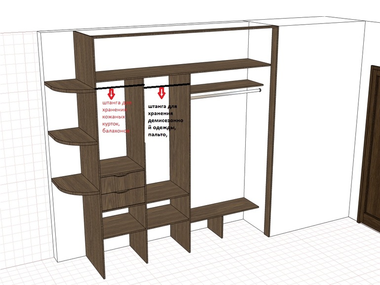 ВОПРОС: как вы думаете, не многовато ли у нас штанг? Может быть штанги в шкафу под верхнюю одежду заменить на полки? Из опыта использования, что удобнее? Я вот переживаю, что мало полок.
