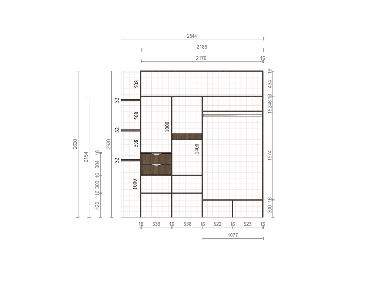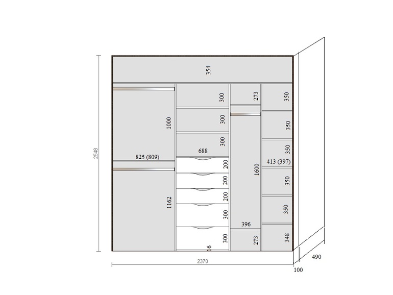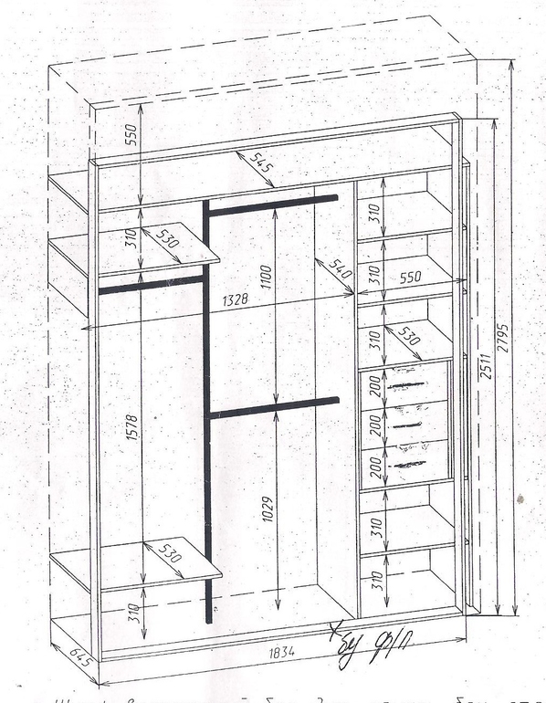 ШКАФ № 1 (слева) - предполагается под блузки, футболки, белье и т.д.