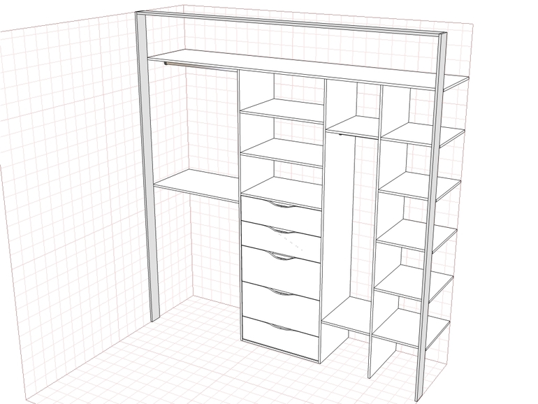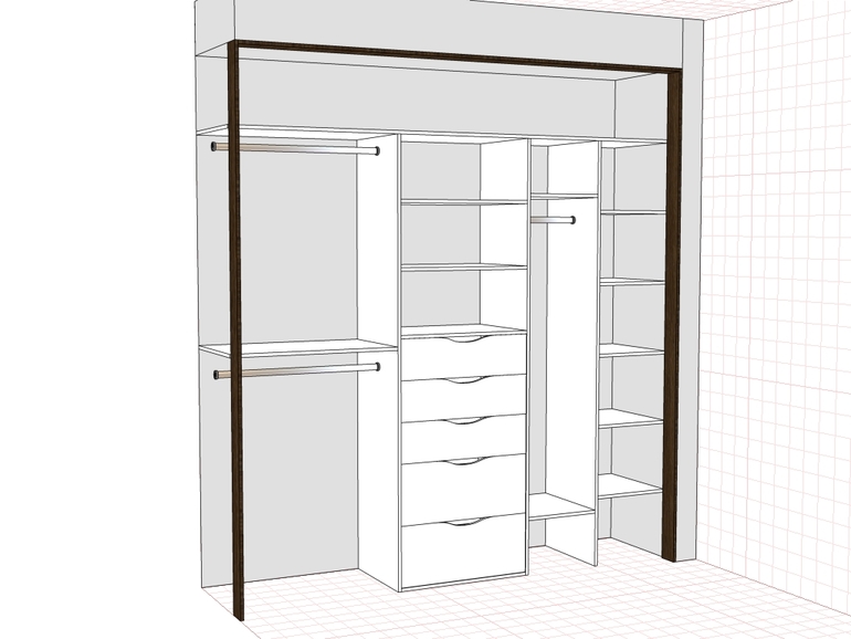Итак, что имеем. В прихожей у нас будет 2 встроенных шкафа-купе. В спальне и других комнатах их не будет + есть небольшое помещение (как кладовка), в котором мы планиуруем хранить коробки, консервацию, пылесос и т.д.