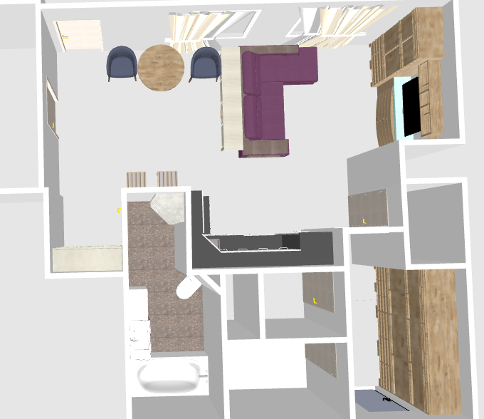 P.S.: ещё есть мысли как бы отделить зону кухни от зоны гостиной стеклянными дверями, как шкаф купе. Когда открыты- единое пространство, закрывать когда готовишь, например, чтоб запахи не проникали.