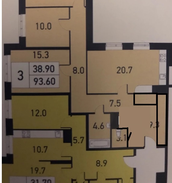 Ниже будет планировка от застройщика и нарисованная мной планировка.