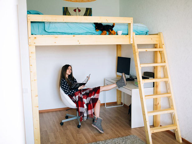 А вы не рассматриваете варианты использования кровати-чердака. Можна очень стильно и удобно сделать