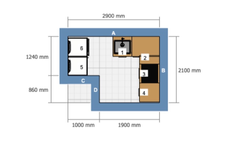 По стране которая 1900 стены нет, по стене 2100 окно в самом углу до потолка, шириной 70см.