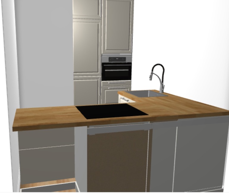 А если в ту нишу поставить варочную поверхность и духовку, а напротив холодильник и раковину с посудомойкой?