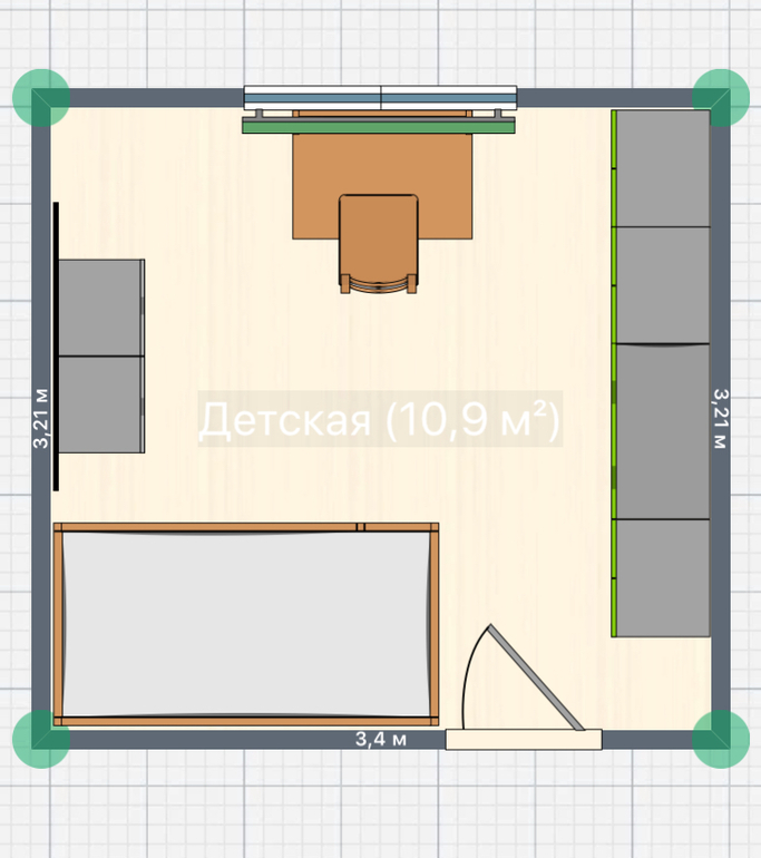 - в идеале было ещё небольшой спортивный уголок впихнуть, но сомневаюсь, что площадь позволит…