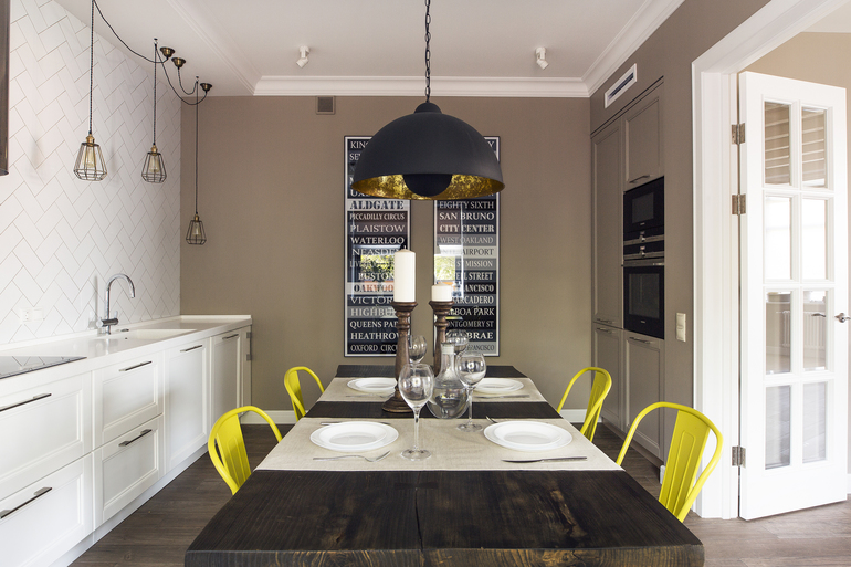 Кухня. Без верхних шкафов, чтобы не загромождать пространство.