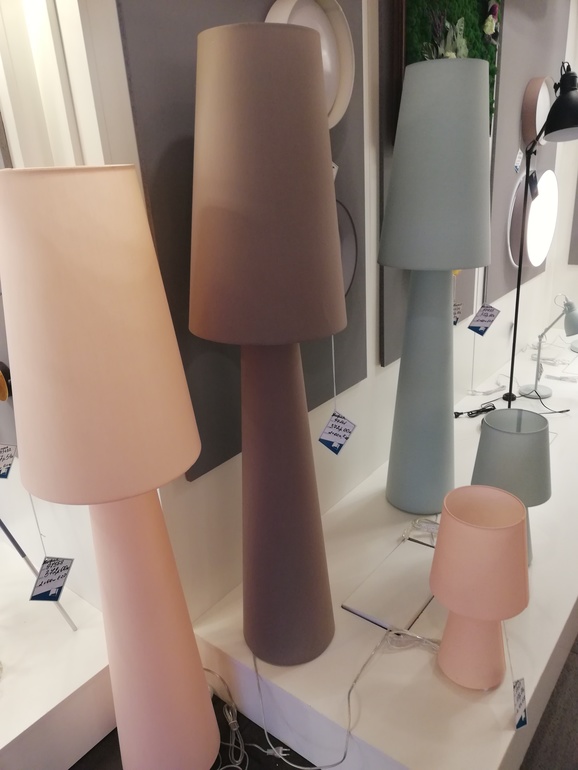 Эти из ткани, видимо они будут давать мягкий и приятный свет, много цветов. Мне подойдет люьой в комнату.
