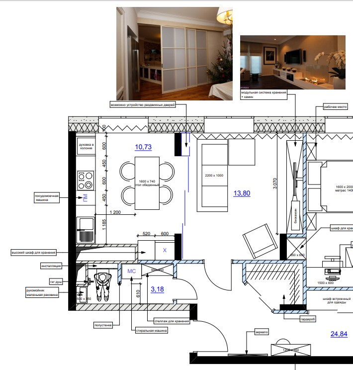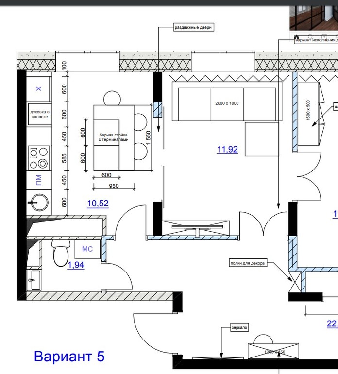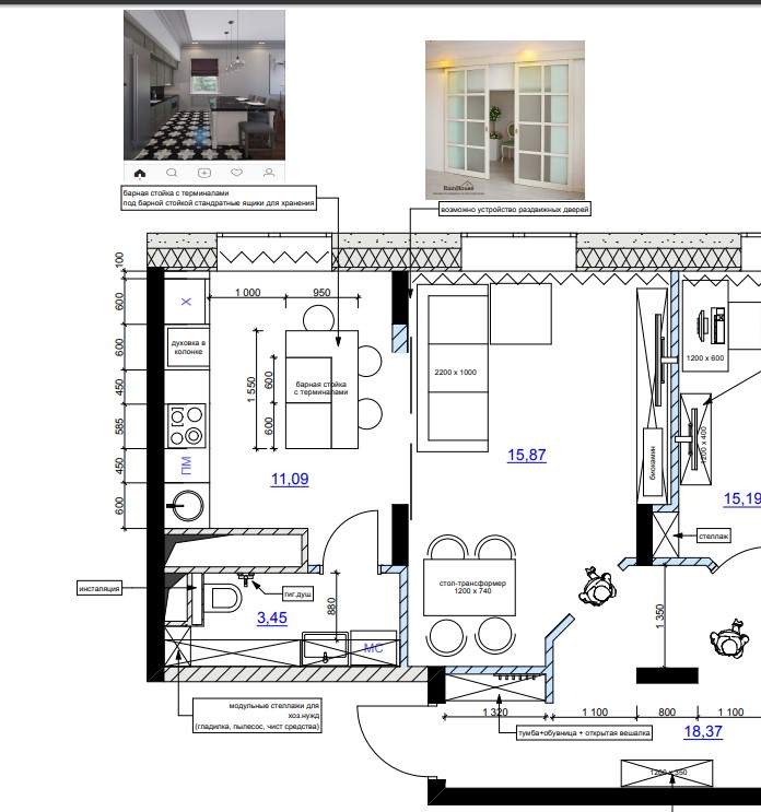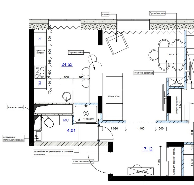 делала квартиру - у хозяйки тоже было непонимание узла кухни-гостиной