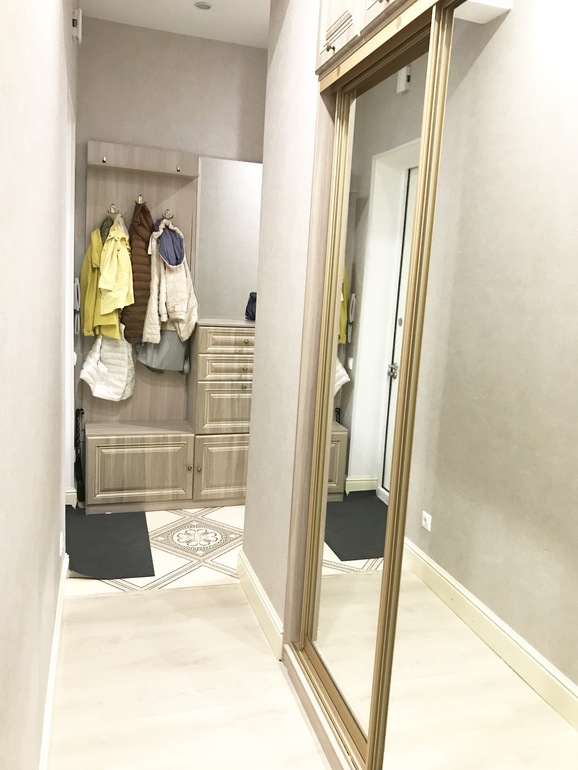 У нас сейчас прихожая холодного оттенка,с теплым тоном плинтусов и дверей неплохо смотрится,но там двери коричневые и поэтому даже не знаю..склоняюсь с нежно голубому🤔