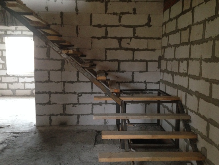 Лестница пока в черновом варианте, потом она будет обшита без просветов между ступенями и наверное перила будут по всей высоте лестницы (рейки от потолка до пола)