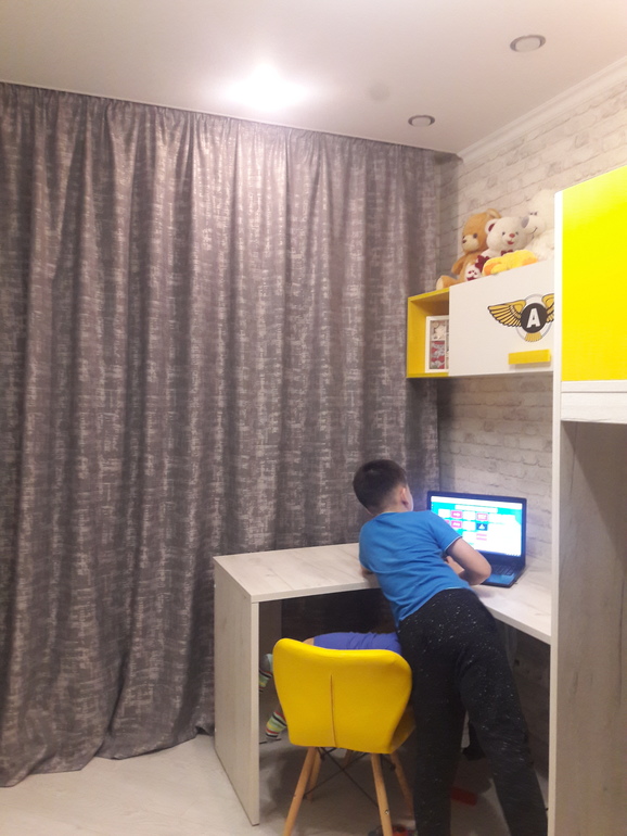 у меня одна стена темные серые, все остальные почти белые. шторы выбрала тактике синие. Еще примеряла горчичного цвета, тоже подходят.