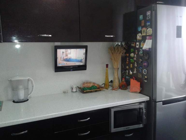 Да, разумеется, каждый ищет свой вариант. Просто Вы написали, что не знаете, куда деть микру, чтобы она на столешке место не крала. Вот я и привела примеры. Есть семьи, где на кухне только салатик и колбаску режут, а есть семьи, где тесто на пироги раскатывают. Ширина рабочей поверхности будет для них иметь разное значение. Автор в своем проекте разместила варочную на 4 конфорки, поэтому я решила, что широкая рабочая зона будет не лишней в конкретно взятом случае.