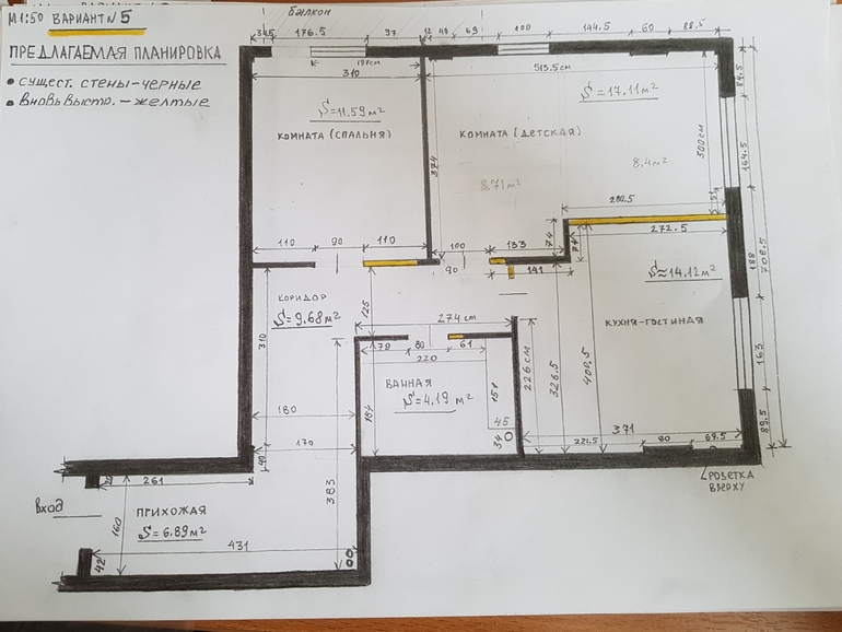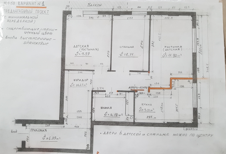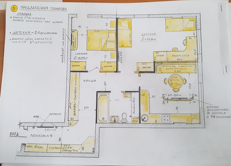 В итоге я выбрала совсем другой вариант)но оставила не 3 комнаты,а решила сделать кухню-гостинную,спальню и детскую