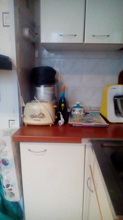 Холодильник стоит в другом углу, пусть там и остается) на крайний случай еще рассматриваем полки (шкафчики) там вот над дверью.