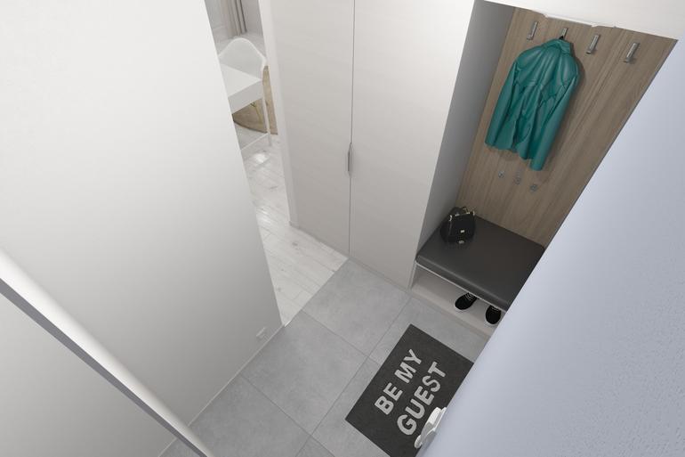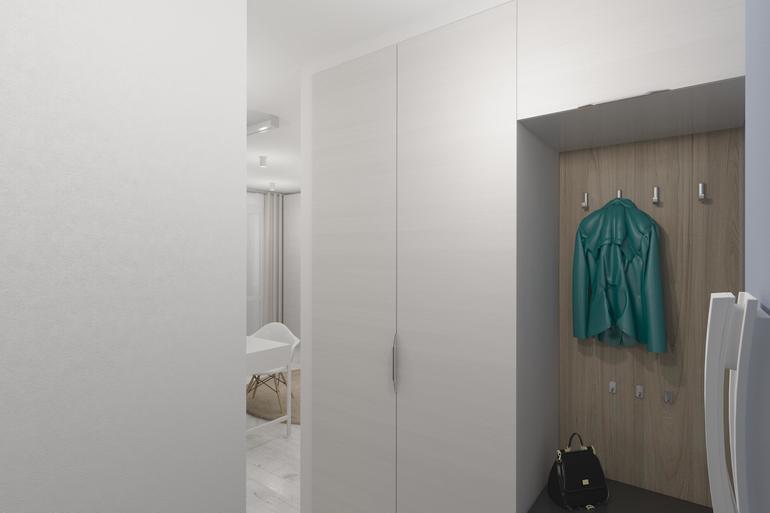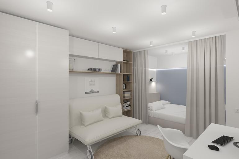 Авторские проекты дизайнеров.(Посты не по теме будут удаляться!)Всем добрый день! Очень давно не размещала здесь своих работ. И вот наконец добралась) Хочу вам показать проект маленькой однокомнатной квартиры - 31.5 м2, для девушки 20 лет. Были озвучены самые главные требования, того, что должно обязательно присутствовать в проекте: большая двухспальная кровать 180х2100, рабочий стол, проектор с экраном в зоне гостиной (телевизор сначала не планировался совсем, но потом добавили в спальную зону). Стол на кухню заказчица не хотела. Ее устроила небольшая барная стойка. По цветовой гамме, хотелось очень светлый интерьер.