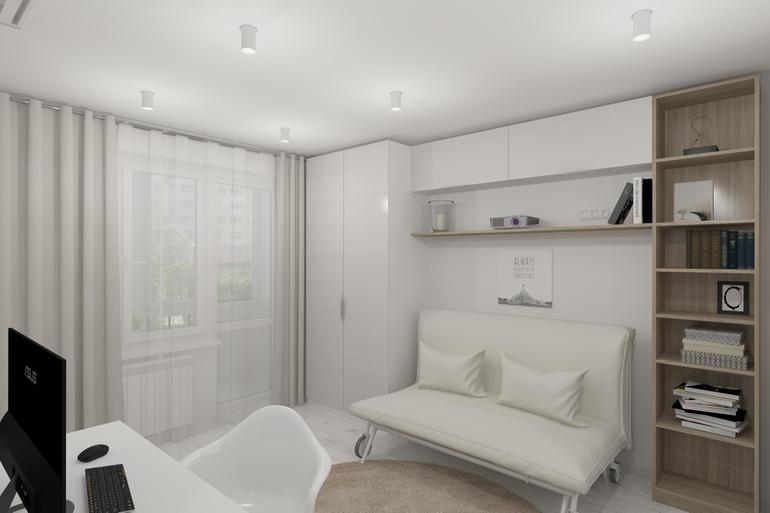 Заказчица в процессе реализации вообще отказалась от текстуры дерева на мебели и сделала все белым) и даже шторы. Вот так бывает. Ну любит человек белый цвет.