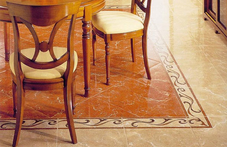 На вашем фото, похоже, что это метлахская плитка, в интернете полно информации о ней. Но мне кажется, она очень скользкая. Коврами из метлахской плитки обычно украшают прихожие, для них она более практична.