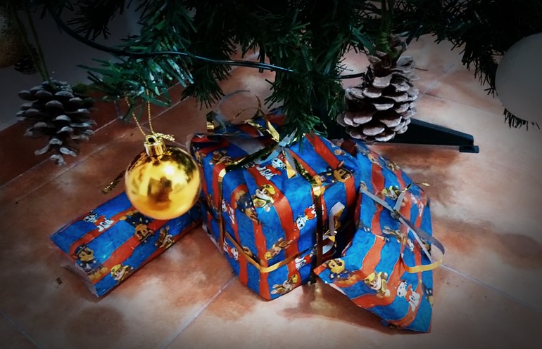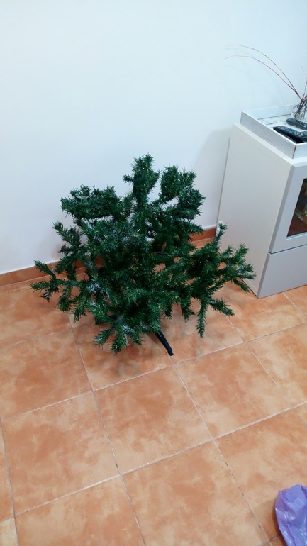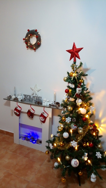 Нарядили всеми игрушками, которые были. В позапрошлом году у нас была красно-золотая, в прошлом снежно-белая елочка. В этом году на елке все вместе.