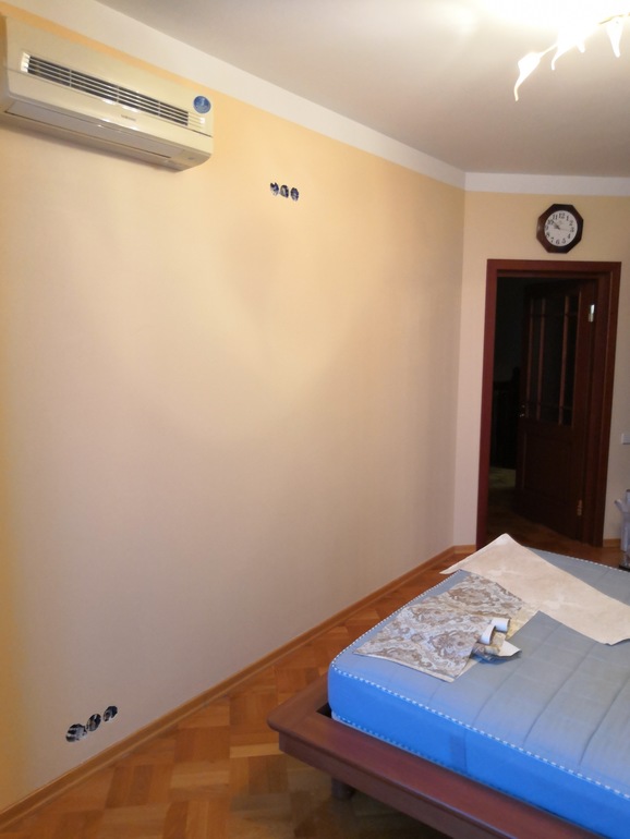 Что же делать? Прошу помощи.... Решила перекрасить спальню, так как прошло много лет и стены были все затерты, грязные и так далее.... Есть в спальне стена, на которой висит телевизор и были полки стеклянные для безделушек..... И самое неприятное, к телевизору шнуры были проведены в кабельканалах..... В общем, сейчас все проштроблено,розетки выведены на середину стены, но вся стена была в отверстия от дюбелей(кабельканалы,полки....как после пуль)). Я решила облегчить мастеру его работу, да и стену сидела более активной(а надо ли, там будет телек) и купила декоративную штукатурку "корка апельсина"...... Ужас(((Получилось очень плохо, я увидела, когда все было заколеровано.