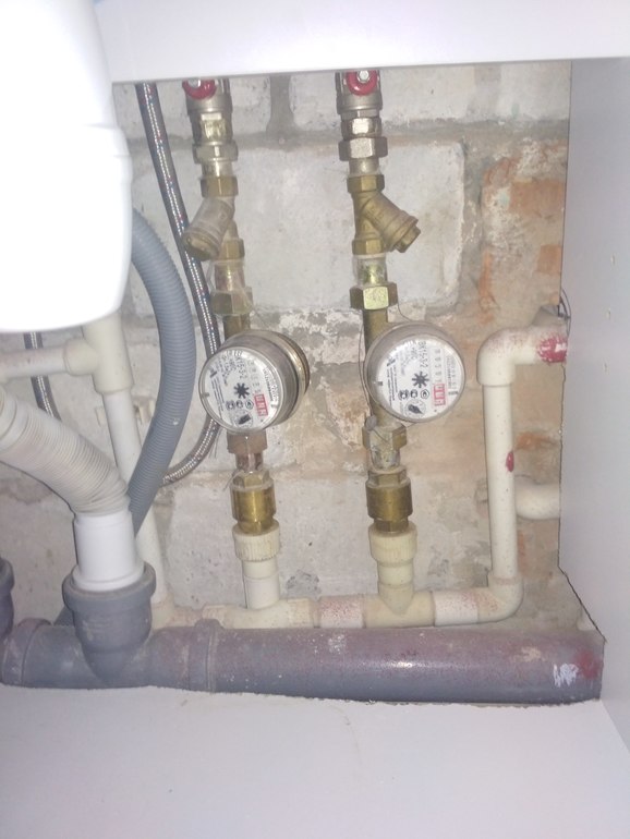 Санузел раздельный и расположены ванна и туалет рядом, счетчики в туалете на трубе сразу перед разводкой. Доступ через резивионный люк и все удобно.