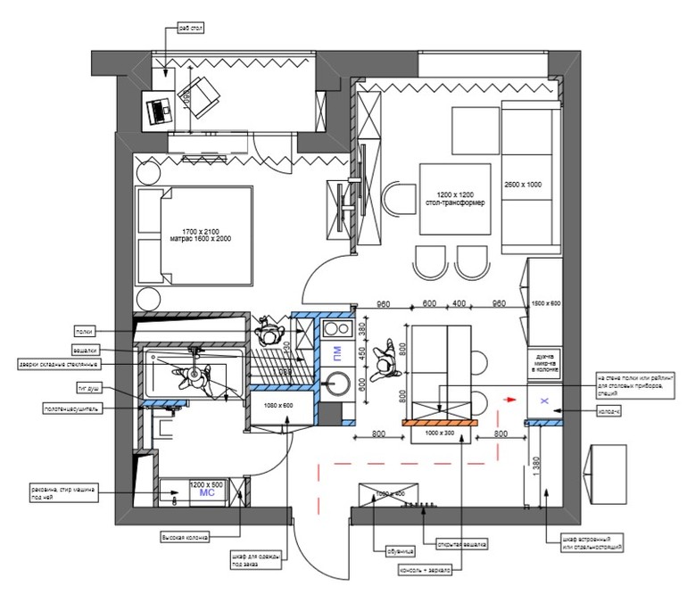 Оранжевая квартира... Хочу из кухни сделать комнату (назвать её кабинет для БТИ). Заделать дверь в кухню, а кухонный гарнитур расположить вдоль ванной, которая обозначена на чертеже. И комнату поделить на 2 части, вровень с кухней. Около балкона часть-спальня, а остальная часть кухня/гостиная... Вот и не могу понять, узаконят? Ведь мокрую зону не переношу, кухня вообще по идее в кухне и остаётся, просто сбоку... Несущей части нет между кухней и гостиной... Подскажите, пожалуйста! И если этим заняться, то с чего начать? И сколько обойдётся узаконить? Спасибо!!