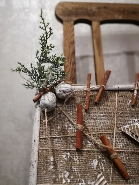 Хочу поделится с Вами работой, новогодней, которая мне очень нравится, особенно из-за того, что сделана она из подручных средств.