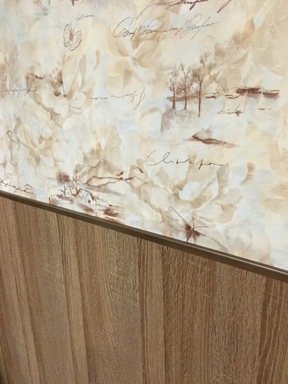 Я вагонку взяла, самую дешевую, распилила, загрунтовала, клею на стены и крашу) получается тоже самое. Верхнего молдинга еще нет..