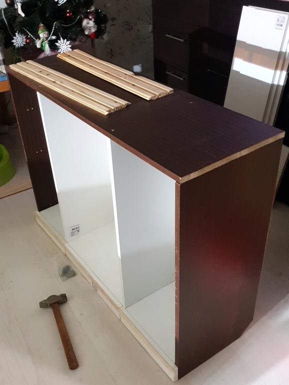 Коробок в доме было мало, а вот мебельных щитов хватало, я достала их из кладовки (дабы они лежали посреди комнаты и все об них спотыкались, так было легче добиться от мужа желаемого😋) и начала донимать мужа)