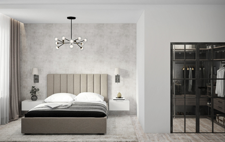 Квартира свободной планировки в 100м2. Стояла задача запроектировать 2 спальни (родительская и детская для двух мальчиков), отдельную от кухни гостиную (она же гостевая спальня), 2 санузла и много-много мест хранения. Проще говоря, чем больше гардеробных, тем лучше.