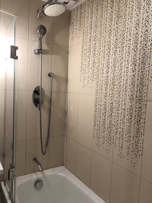 У нас тропический душ встроенный в стену, есть еще обычный душ, пользуемся и тем и тем, т.к. помыть ванну требуется обычный душ, а тропический стационарный и может только угол наклона менять.