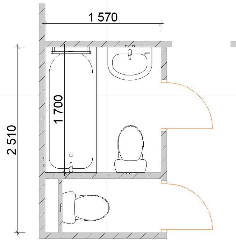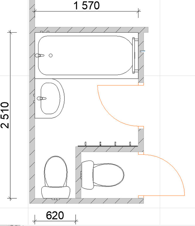 Только раковину и унитаз лучше поменять местами). Чтобы унитаз был ближе к стояку.
