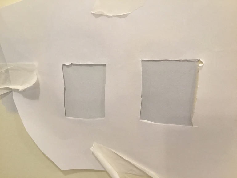Итак, было дано- подобрать колер серого будь его модного цвета в коридор. Посоветовавшись здесь- с радостью побежала и приобрела тикуриллу в цвете бунгало. Какое же было мое удивление- когда пробный выкрас был не красивого серо- голубого цвета, а сиреневого, самого что ни есть сиреневого😨 снова сюда- где был вынесен вердикт « все зависит от освещения и расположения, в вашем случае это самое бунгало будет как ни крути сиреневым, вам холодные тона не подходят- выбирайте тёплый серый». Пошла выбирать тёплый серый в палитре Делюкс . Выбрала, купила, выкрасила .... и...😱 снова сиреневый... не, ну тут мне конкретно уже поплохело. Баночки так то по 800 р. У сына в это время красили комнату голубым. Взяла его: выкрасила- снова сирень. Да что ж такое. Крашу белым холодным ( лежала в остатках)- тоже сирень, тёплым белым- опять она. У меня уже помутнее рассудка началось. Ну как так. Может думаю просвечиваются наши желтые стены😏 крашу белый фриз холст, прикладываю кусок к стене- и он тоже сиреневый... вообщем, бросила я эту затею, решив- не судьба. Муж, видя мое горевание, менял и лампочки и фонариком освещал,но ничего не менялось. Ииии в один момент, пришла одна мысль вырезать бумагу с дырками для выкраса на стене... а теперь ниже смотрим разницу, один и тот же кусок стены и два цвета ( бунгало и Делюкс тёплый серый)