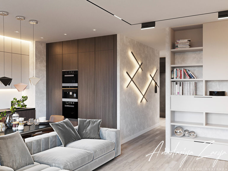 И так перейдем к проекту , была задача создать уютный минималистичный интерьер, причем учесть функционал, и создать разные сценарии освещения, это уже наглядно можно посмотреть на реализации.