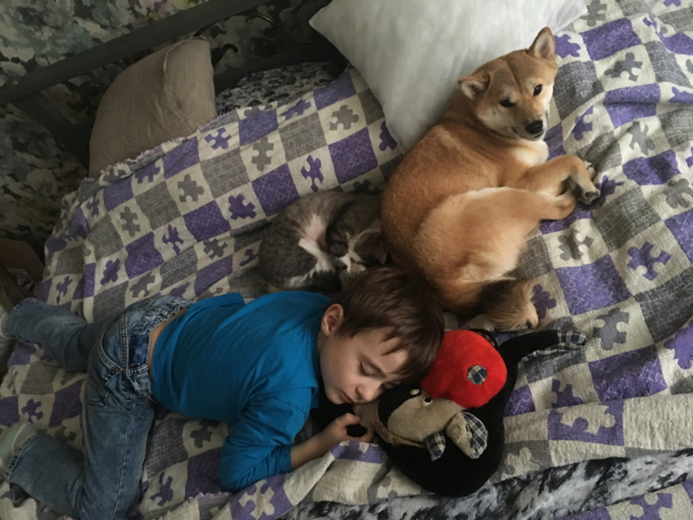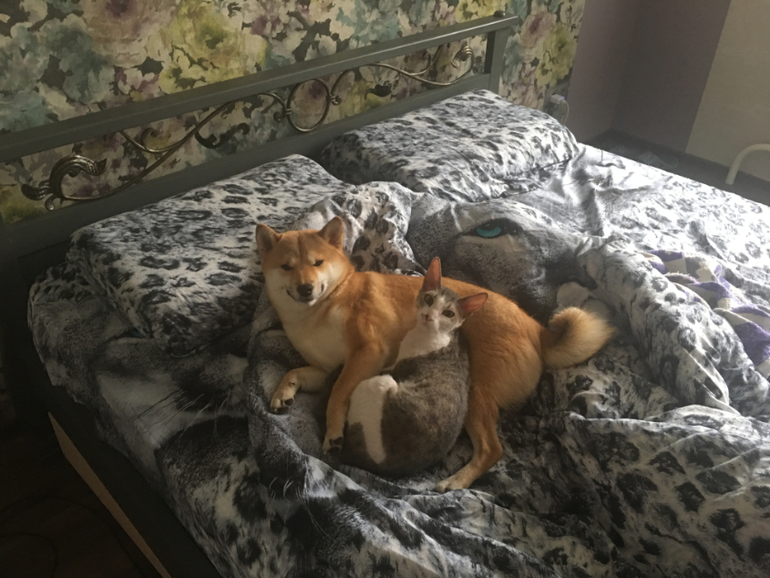 Вообще на удивление наша спальня стала любимым место повалятся и у детей (несмотря на впервые появивишуюся отдельную детскую комнату), и у животных. Прямо аура какая то хорошая )))