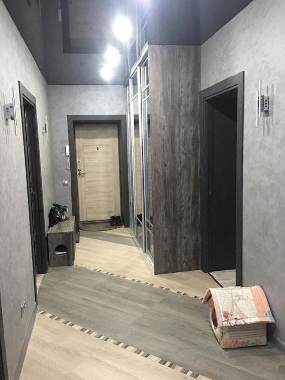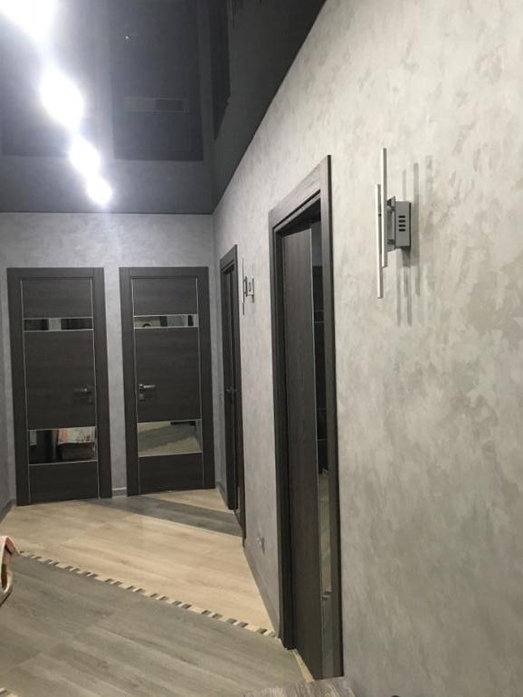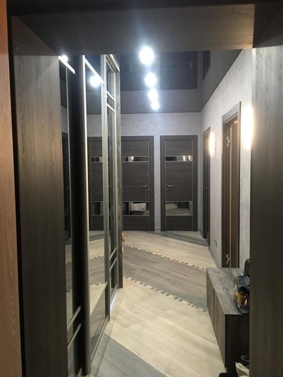 Ах, да... Прихожая.... А ведь принято начинать от входа. На полу керамогранитная плитка керамо мараци выложенная полосами из коллекции арсенале (очень удобная в уборке, просто чудо... у сестры в квартире с дизайнерским ремонтом белый глянец на полу, поэтому есть с чем сравнивать). На стенах декоративная велюровая штукатурка, Из мебели пока шкаф купе для одежды и скамейка-домик для кисы (там спрятан туалет). Потолок черный глянец, хотя выбирали серый темный матовый. Но в нашем городе его не оказалось, не ходовой цвет. И черный то еле нашли. Что понравилось в эксплуатации - пол, очень легко убирается: все пришли грязные с улицы, натоптали, а тряпкой протер и чистота )))