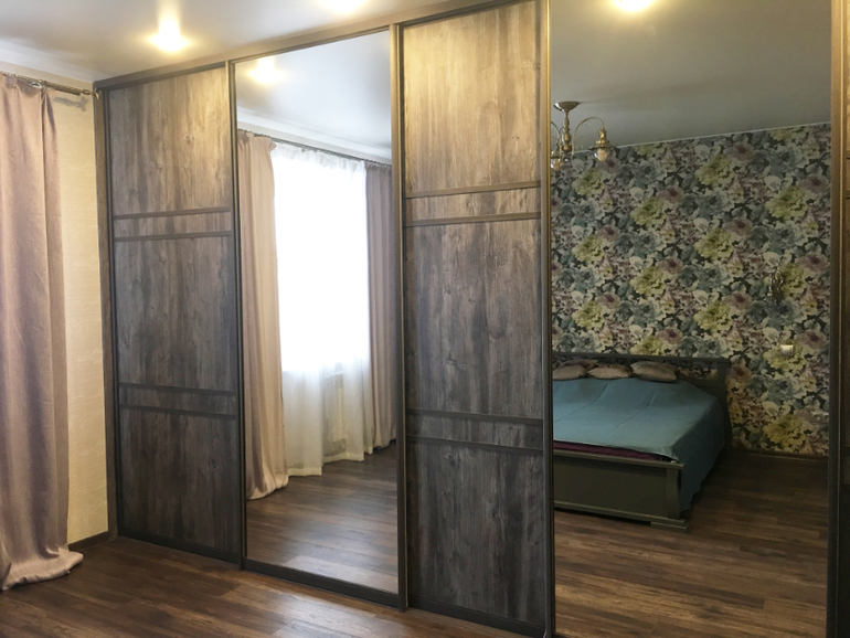 Двери сложного серого цвета с отблеском коричневого. Зеркальные вставки сначала бесили из-з отпечатков детских пальцев, но подружилась с волшебной тряпочкой от виледы микрон и все прошло. Да и дети стали аккуратнее...