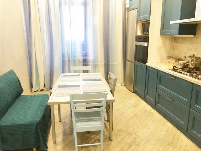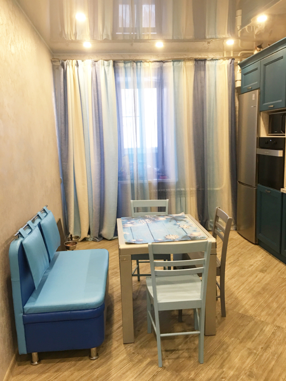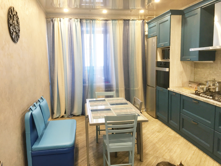 А пришло ярко голубого и синего... Интересно есть краски для кожи чтобы можно самой перекрасить? Хотя шторы немного примирили диван к кухне