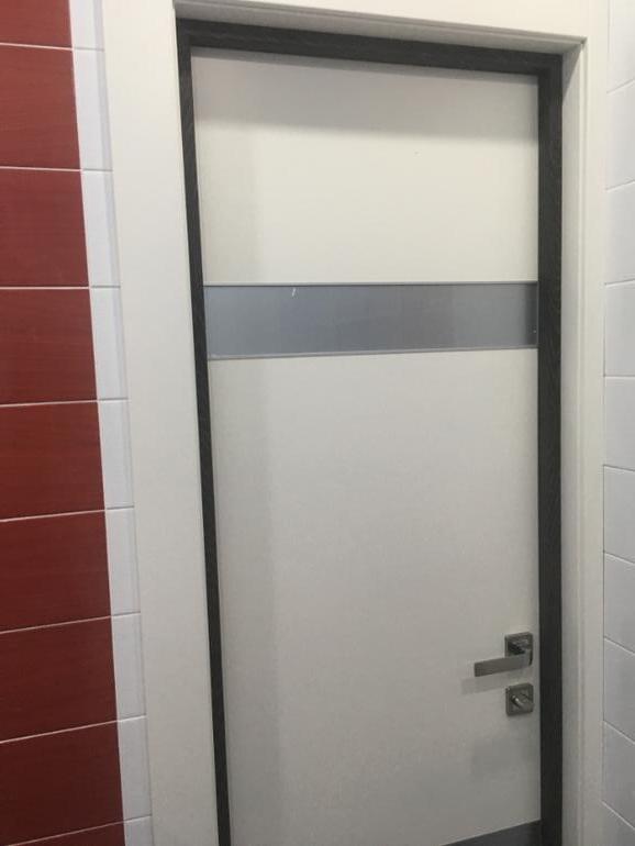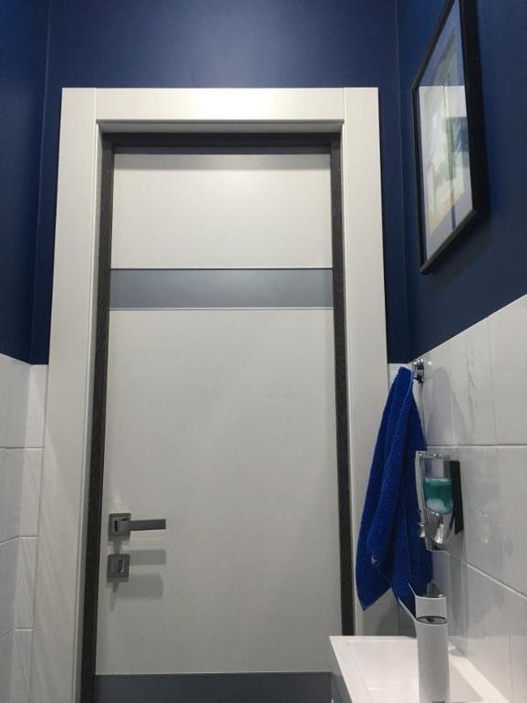 Двери и в туалет и ванную сделали двухсторонние, изнутри белого цвета, обналичники изнутри тоже белые. Но все равно кусок косяка серого цвета виден. Вначале бесил очень, хотелось закрасть, но боялась испортить. А сейчас вроде привыкла. В туалете он хоть перекликается с рамкой картины (вышивала её в молодости лет 20 назад и вот пригодилась)...