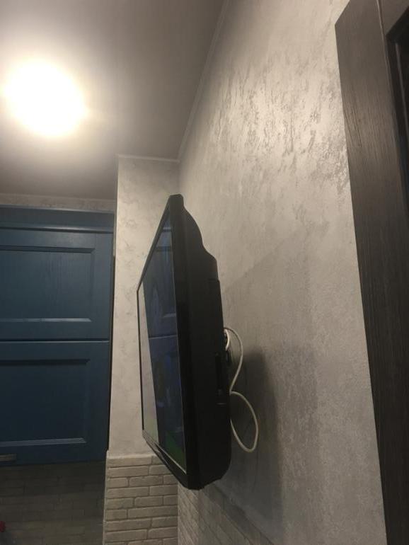 Телевизор сначал раздражал видом проводов сбоку, поэтому пришлось дозаказать для него раму из дерева в цвет гарнитура. Хорошо сейчас - любой каприз за ваши деньги...
