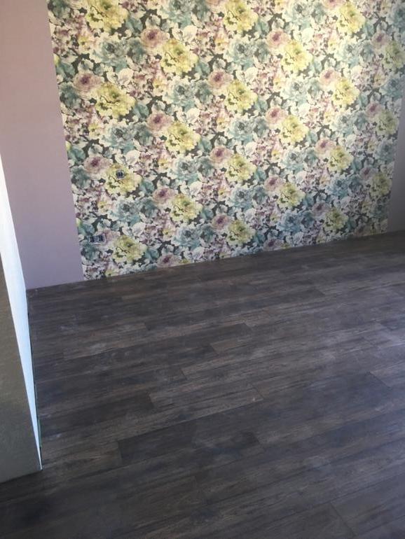 Плитку купили, краску подходящую тоже колеровали на заказ, мастер начал ложить плитку и та-дам... Хоть и было указано, что она подходит для пола, но уже в процессе укладки начала трескаться. Поэтому печворк было решено поместить на инсталяцию, а на пол положить остатки плитки из ванной (оттенок немного другой, но терпимо).
