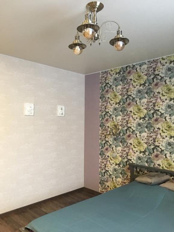 Спальню хотелось в свадебном сиреневом цвете. Долго искала обои под гобелен на акцентную стену.Вырали, хоть и хотелось с рисунком покрупнее. А бежевые обои компаньоны взяли из той же коллекции. Основа напоминает дерюжку и сочетается с грубоватыми шторами.
