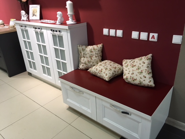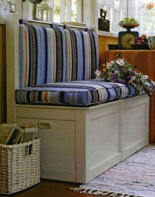 И ящик-скамью вместо этого ужасного дивана, но ведь он под обеденную зону неудобен будет, как думаете?