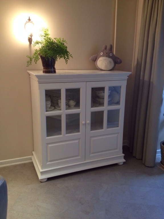 Теперь собственно вопрос. Как оформить противоположную гарнитуру стену??? Как лучше сделать обеденную зону? Вообще хочется заказать сервантик-комодик такого же цвета (хотя совершенно не хотелось фасадов со стеклами) типа такого