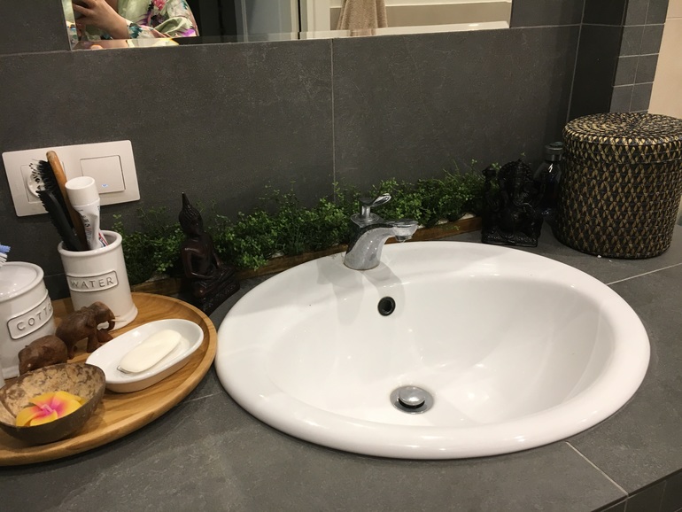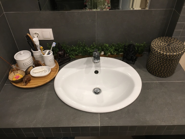 Еще можно сделать столешницу из плитки или капня или под дерево и ее украсить в средиземноморском стиле. У меня под тай, но идея думаю понятна.