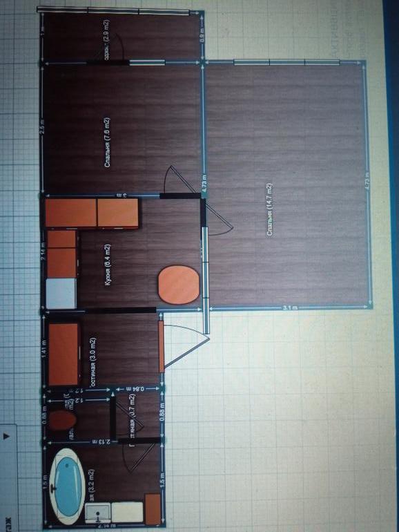 2. Сдвинула стену в комнату с балконом. Комната будет примерно 3 метра на 2,5, да крохотная, но в будущем можно ее объединить с балконом!) Мне одной хватит вполне такого размера. Возможно не 2,5 а ещё меньше сделаю после точных расчетов.