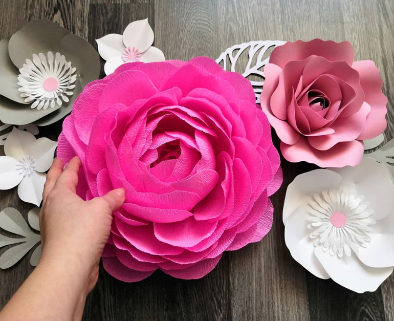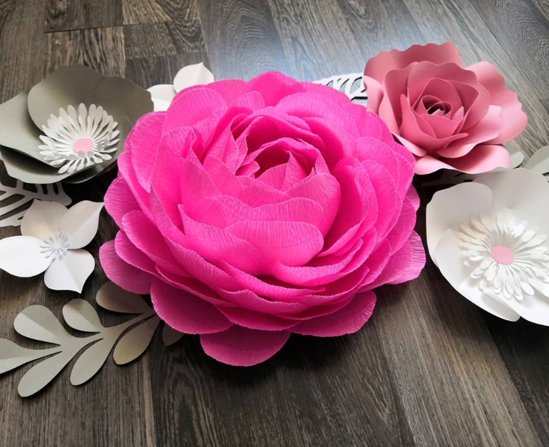 Спасибо. Центральный пион из итальянской гофро-бумаги плотностью 140гр, остальные цветы и листья из немецкого дизайнерского картона плотностью 160гр.