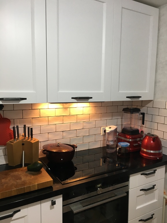 В процессе ещё. Кухню поставили, но ремонт ещё тянется, деньги кончились 😅 Пока нравится, протираю, как вспомню.