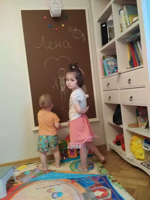 мы сделали часть стены, по середине комнаты. Вечно меловая крошка, даже от мелков, которые крошиться не должны. В целом удобно, мы с сыном рисуем и занимаемся на ней почти каждый день, но реально грязно!